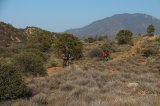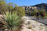 Départ à la fraiche pour entamer une belle partie sauvage sur des chemins sabloneux entourés d'énormes blocs de granit. Sacrée ambiance... Traversée d'une partie désertique pour atteindre la petite ville de Anza, ou nous faisons une longue pause à l'ombre du General store pour éviter la chaleur de l'après-midi. Nous rencontrons la gérante du magasin, une indienne (d'Inde !) rescapé dans le désert de l'US ! Nous repartons pour attaquer un passage sur une jolie crête avec vue panoramique sur le désert et des chaînes de montagnes environnantes. Une montée sur single très teigneuse sur du sable granitique à l'adhérence douteuse. Nous basculons dans une nouvelle vallée. Quel contraste ! Ambiance "Rocheuses" avec les premier pins Pandarosa qui jaillissent de l'herbe jaune. Pascal a la chance de voir un chat sauvage jaillir quelques mètres devant ses roues et se sauver tel un dauphin qui ondule dans les herbes… Cette grande vallée ouverte nous amène à notre bivouac du soir au lac Hemet.